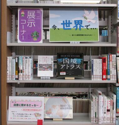 1階ミニ展示コーナー 「今、世界で...」を特集しています